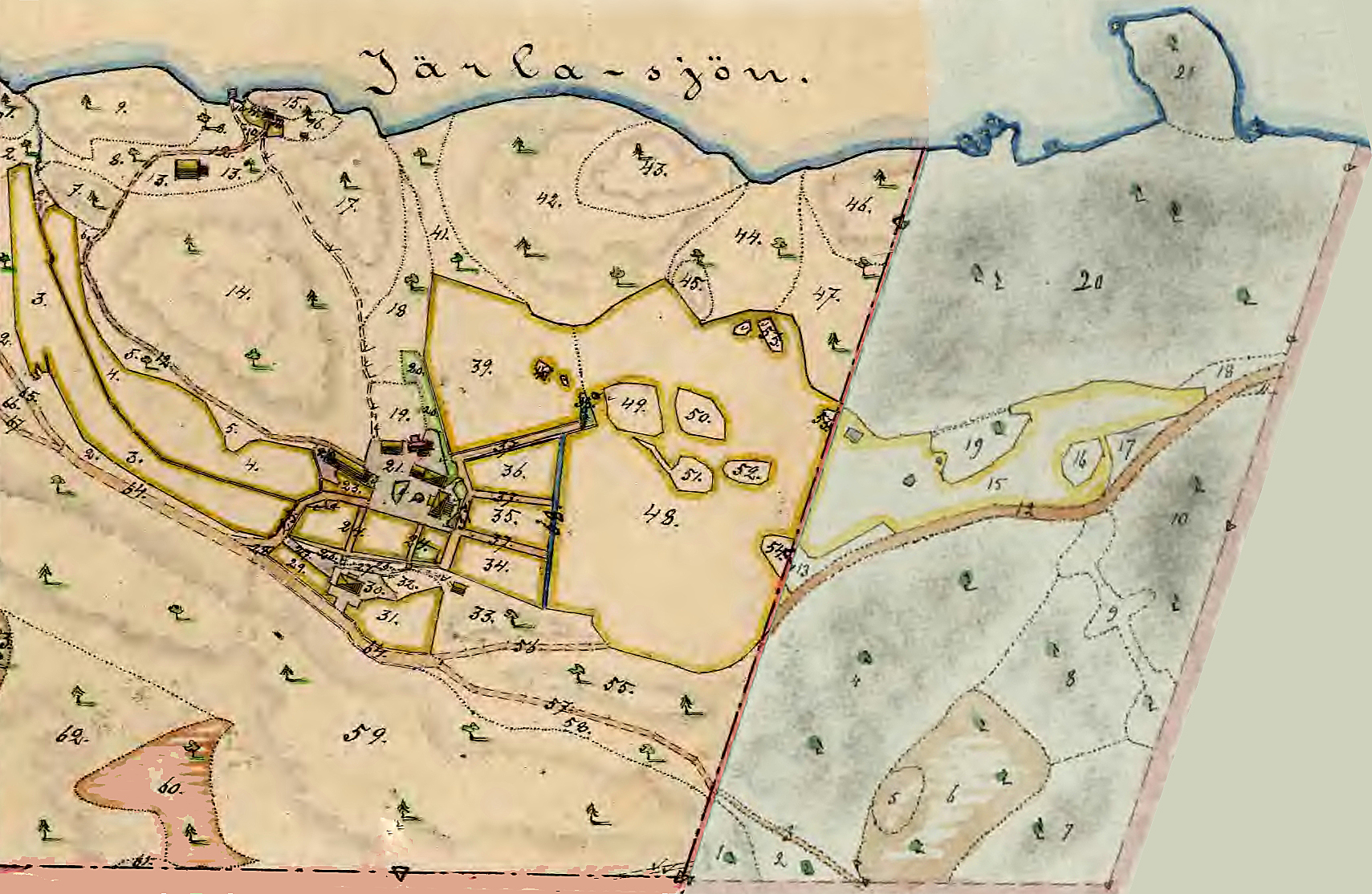 Styckningskarta för köpet. Vänstra delen avser köpet 1902 och den högra delen köpet 1905.