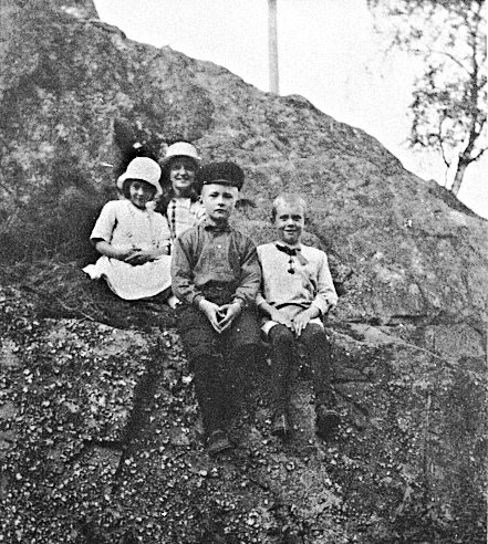 Nils Kling (i skärmmössa) med kamrater på berget vid Nacka Kvarn